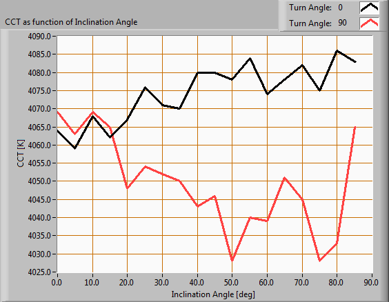 Color temperature as a function of inclination angle.