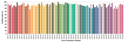 TM-30-15-values for 99 samples for the light of this light bulb. The closer the value for a testcolor comes to 100, the more its rendition resembles that of a reference lightsource.