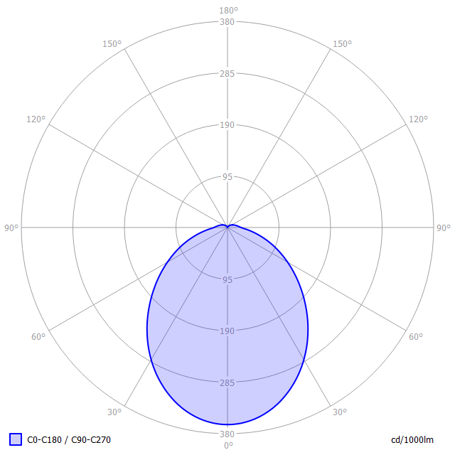The light diagram indicates the beam in the C0-C180 plane and in the plane perpendicular to that, the C90-C270 plane. These beams are equal as the lamp has symmetry over its first axis (the vertical axis).