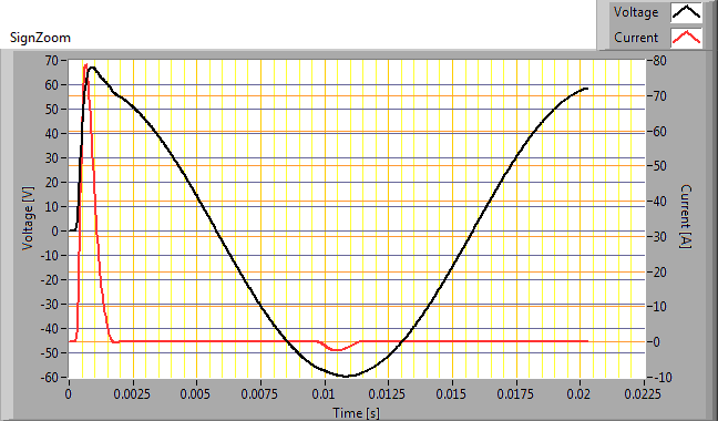 | Minimal inrush current | 6.695 A | This current has been found at a voltage start angle of 170 degrees. |