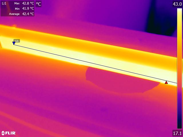 Here an LED bar from Triolight B.V.. The measurements from OliNo show that the lamp emits a warm/neutral white light with a color temperature of 3878 K. The lamp consumes 22.4 W and has a luminous flux of 1693 lm. This results in an efficacy of 76 lm/W. The lamps energy category label is G (2021).