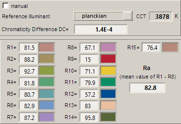 Herewith the image showing the CRI as well as how well different colors are represented (rendered). The higher the number, the better the resemblance with the color when a black body radiator would have been used (the sun, or an incandescent lamp)